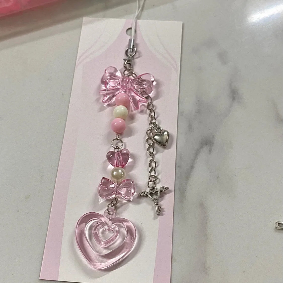 Beaded Heart Phone Charm