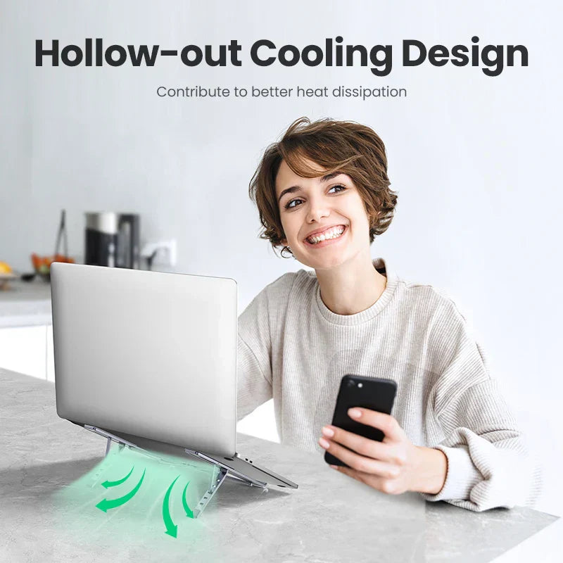 Keep your devices secure with this foldable aluminum stand. Designed for Macbook Pro, tablets, and phones, it offers superior support and portability.